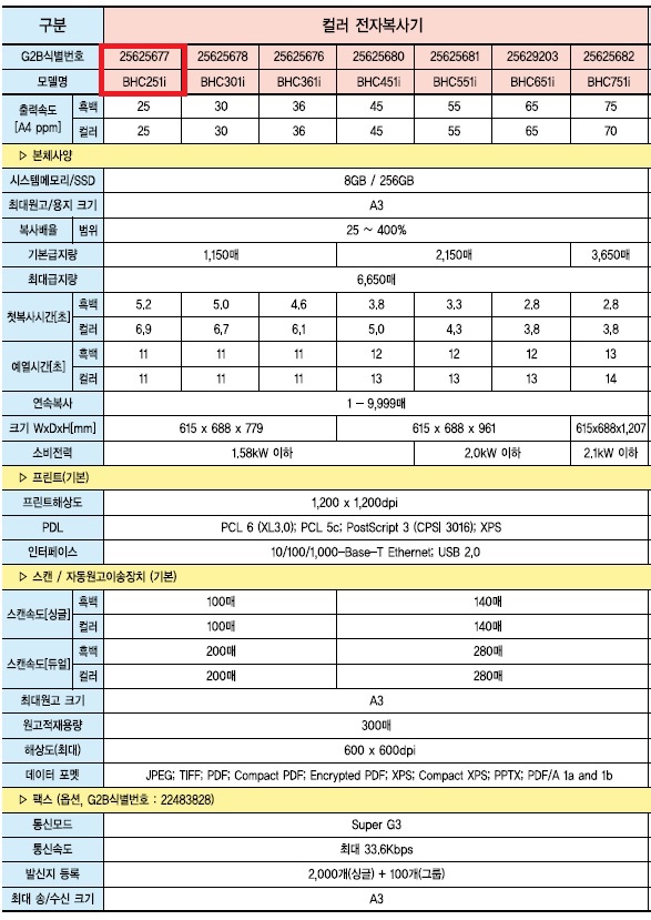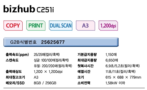 복사/출력 속도(A4 기준) : 25/25ppm(흑백, 컬러 동일)