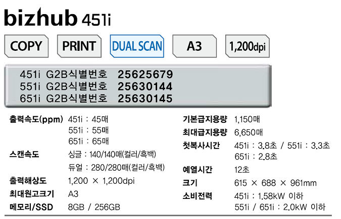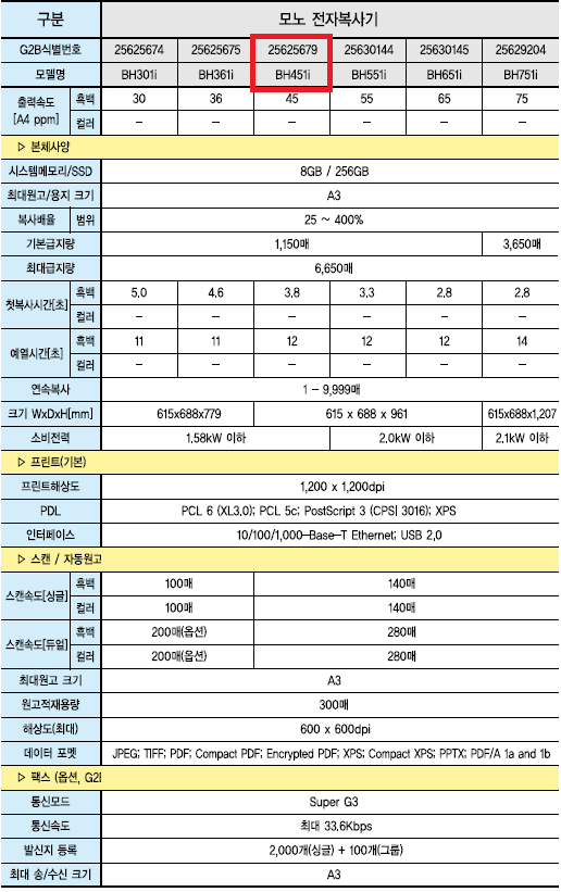 복사/출력 속도(A4 기준) : 45ppm(흑백)