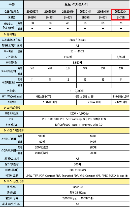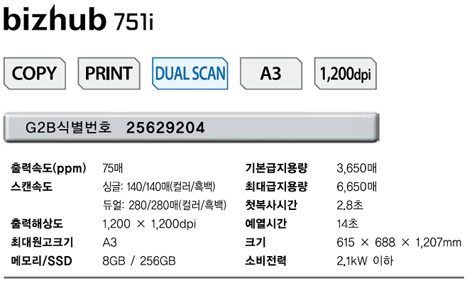 복사/출력 속도(A4 기준) : 75ppm(흑백)